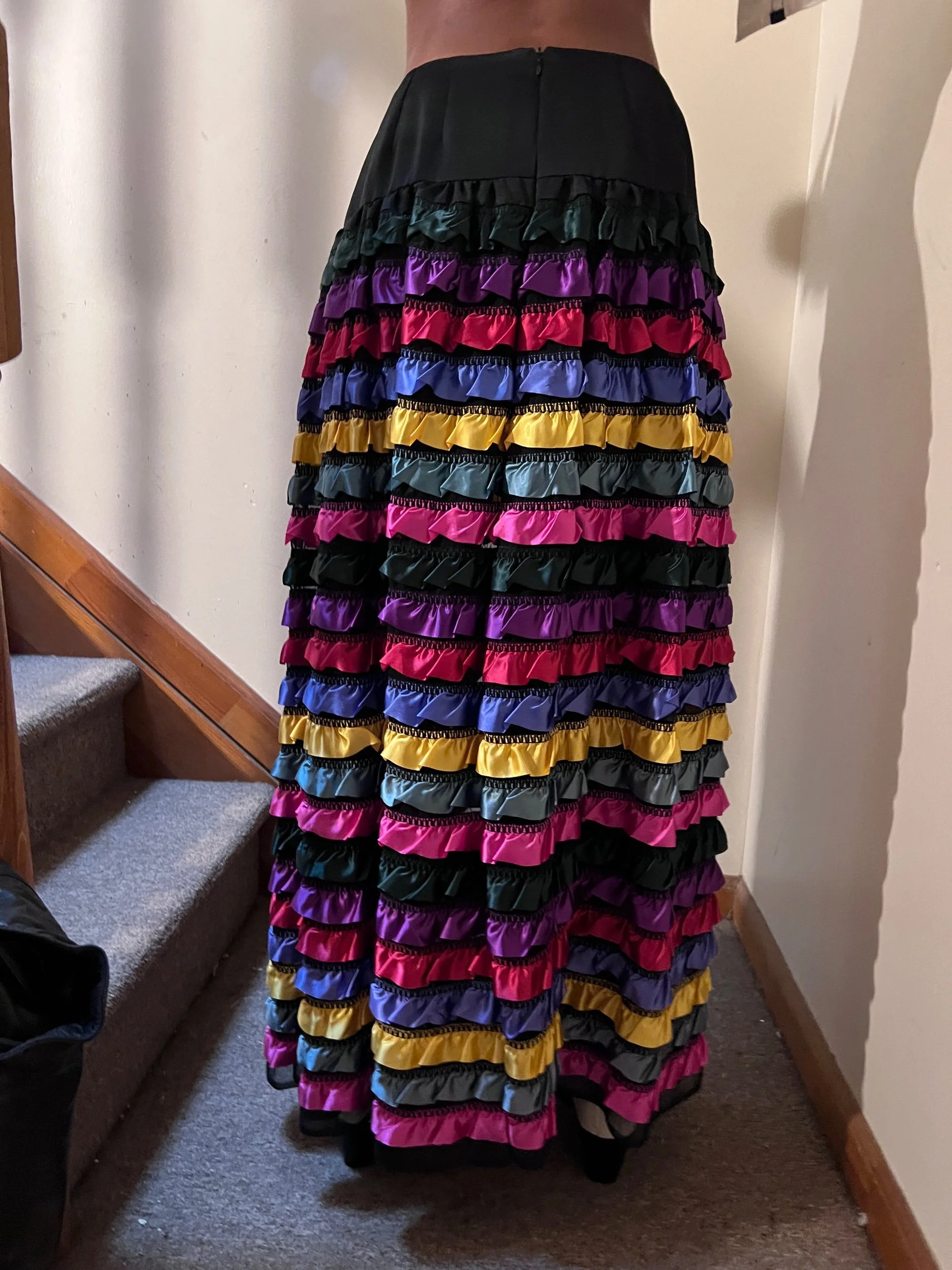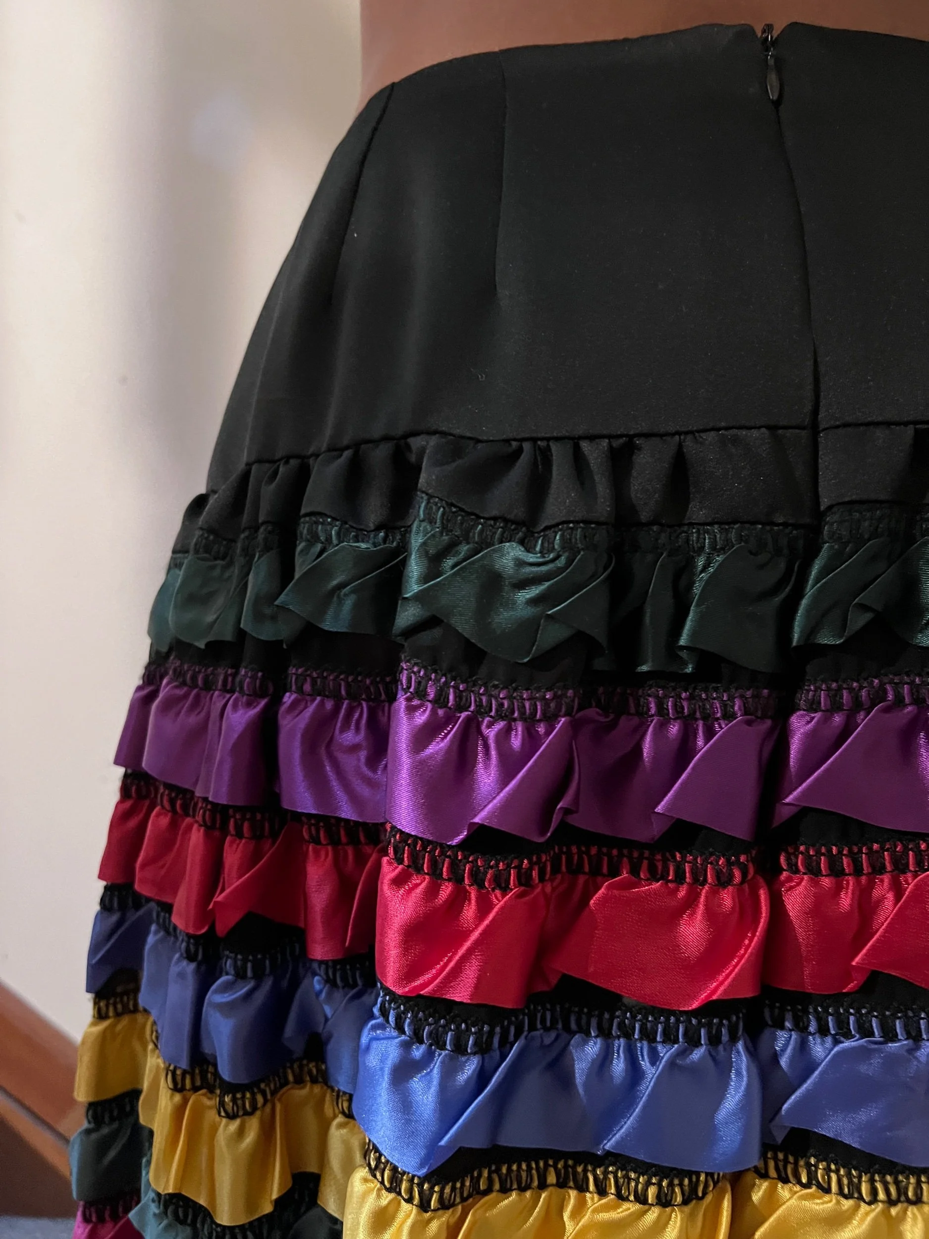 Description: Y2K black suede pants with white typography sayings…low waisted with front zipper and hook and eye closures…raw edge hem.
